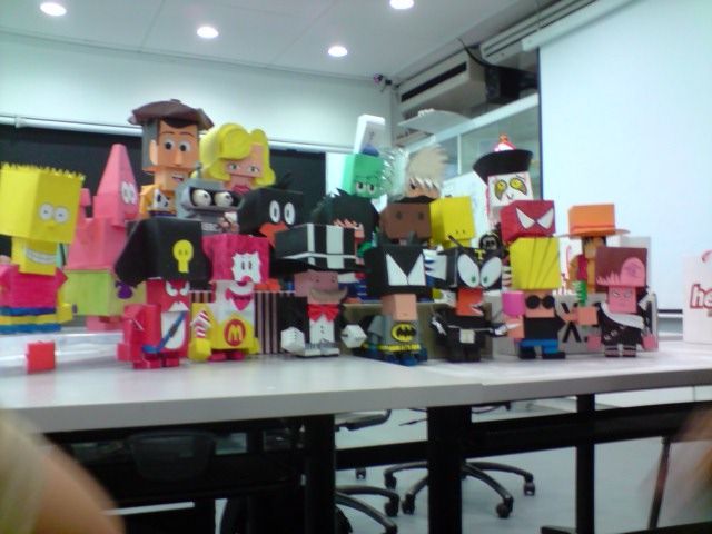 {w/o flashlight} lol. \ Last but not least. Our class's brickboys! (: Spot mine! cool right? ahahahah/ my final brickboy with my very very very first SMALL brickboy we did on first lesson beside it. HONGLING, WANT KISS IT?!! hahahahaha/. GC starting le, attendance taking now. lol. oh ya, just took temperature as well. the thermometer mummy brought for me $12 luh! but like so lousy like that. Anyway, enjoy the pics ah! bye (: